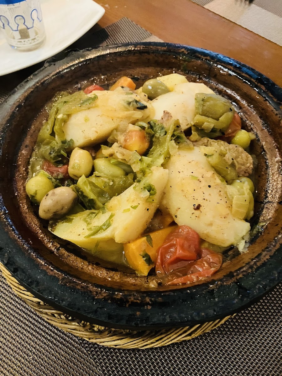 Lovely place to eat we had the chicken, fish and calamari tagines and they were very tasty. The atmosphere was calm and authentic and the price was resonable. Staff were very friendly. We were very happy with our experience.